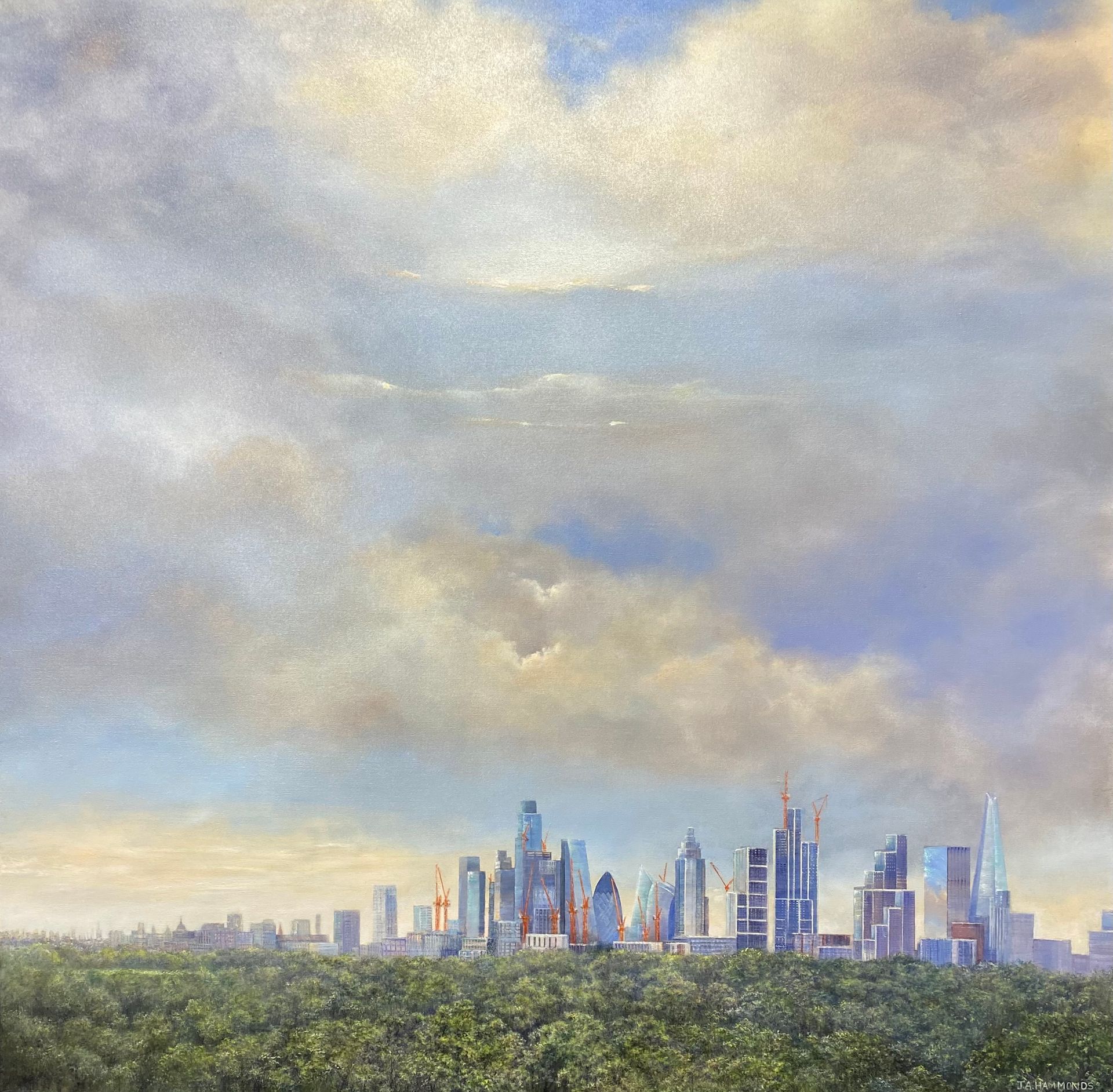 Traditional themes with a classical style form the majority of her work, and have been collected and hung worldwide. Large scale boardroom landscapes and seascapes are a speciality.