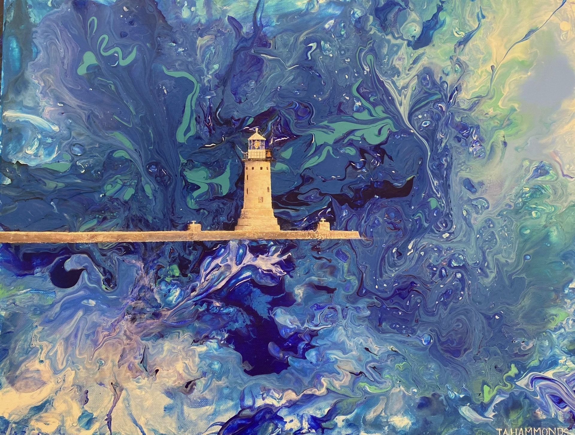 Working from her studio overlooking Plymouth Sound, Julie Hammonds has for many years drawn inspiration from the sea and the South Devon countryside for her oil paintings. Recent works have concentrated on portraiture and large scale canvases.